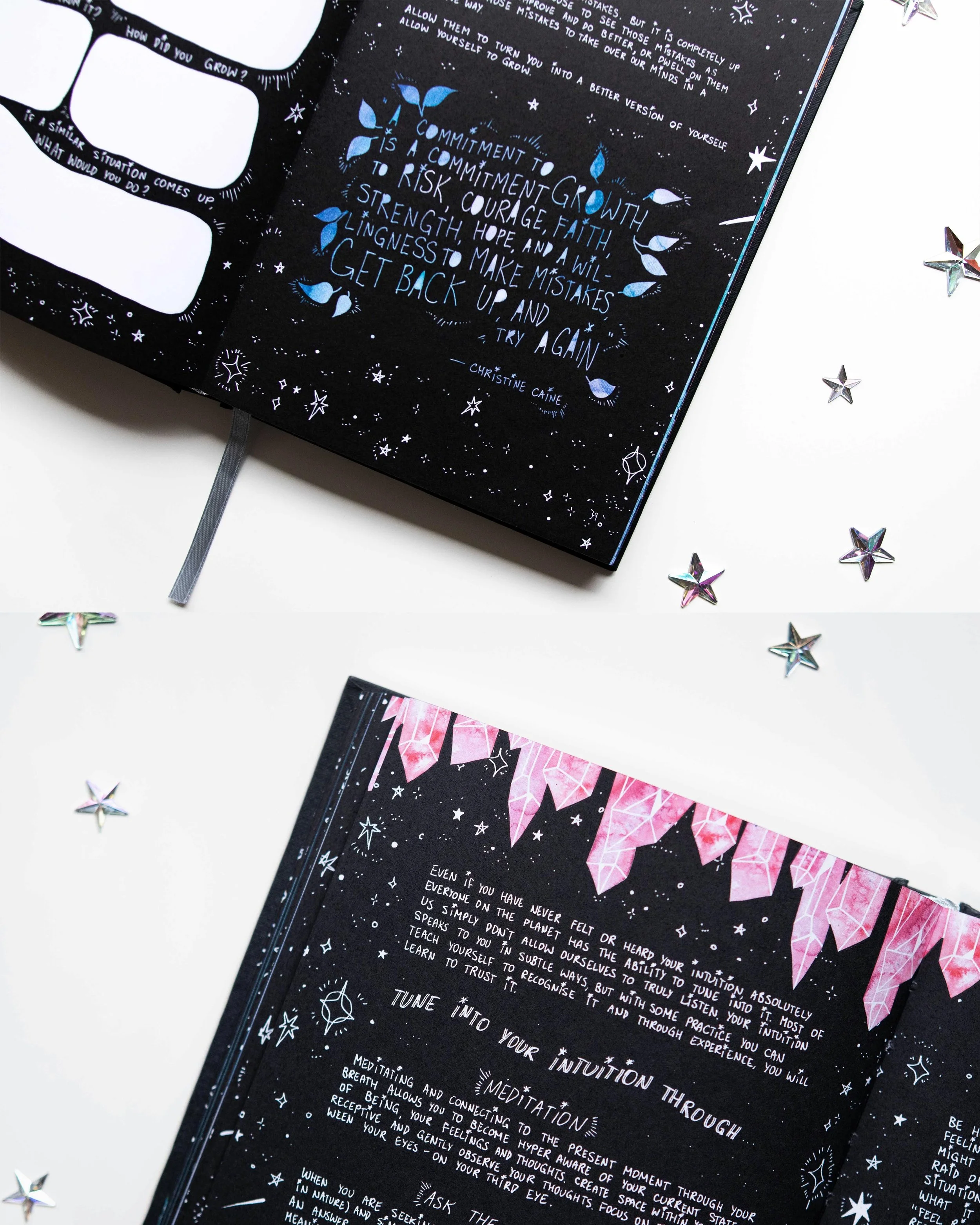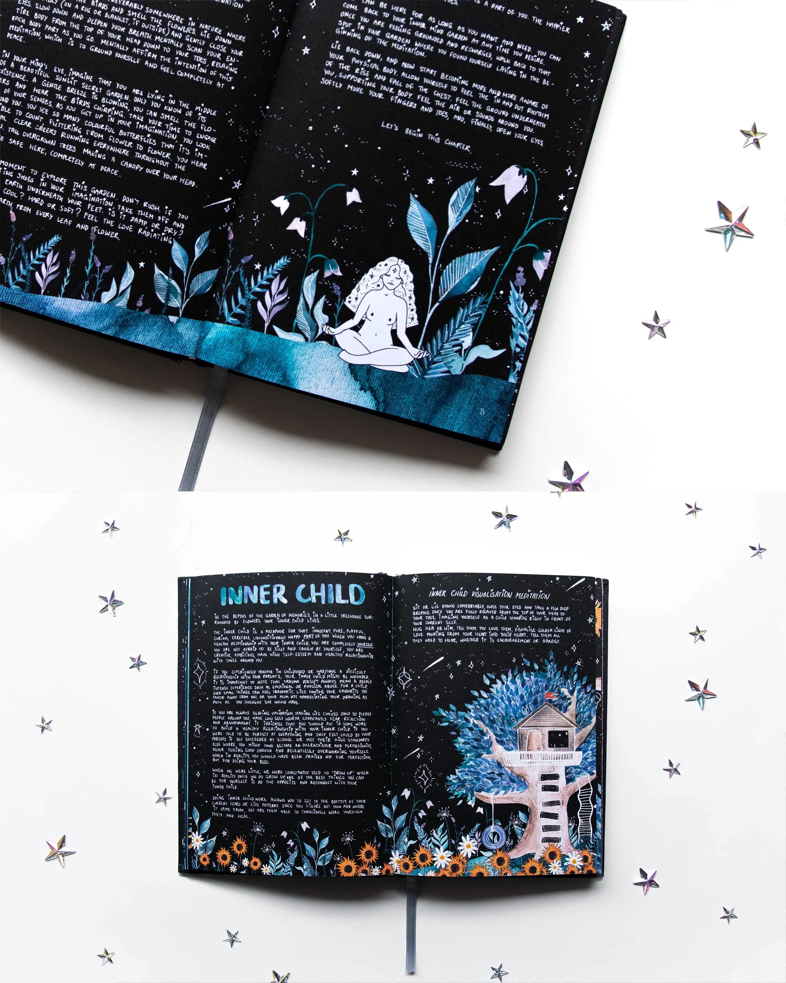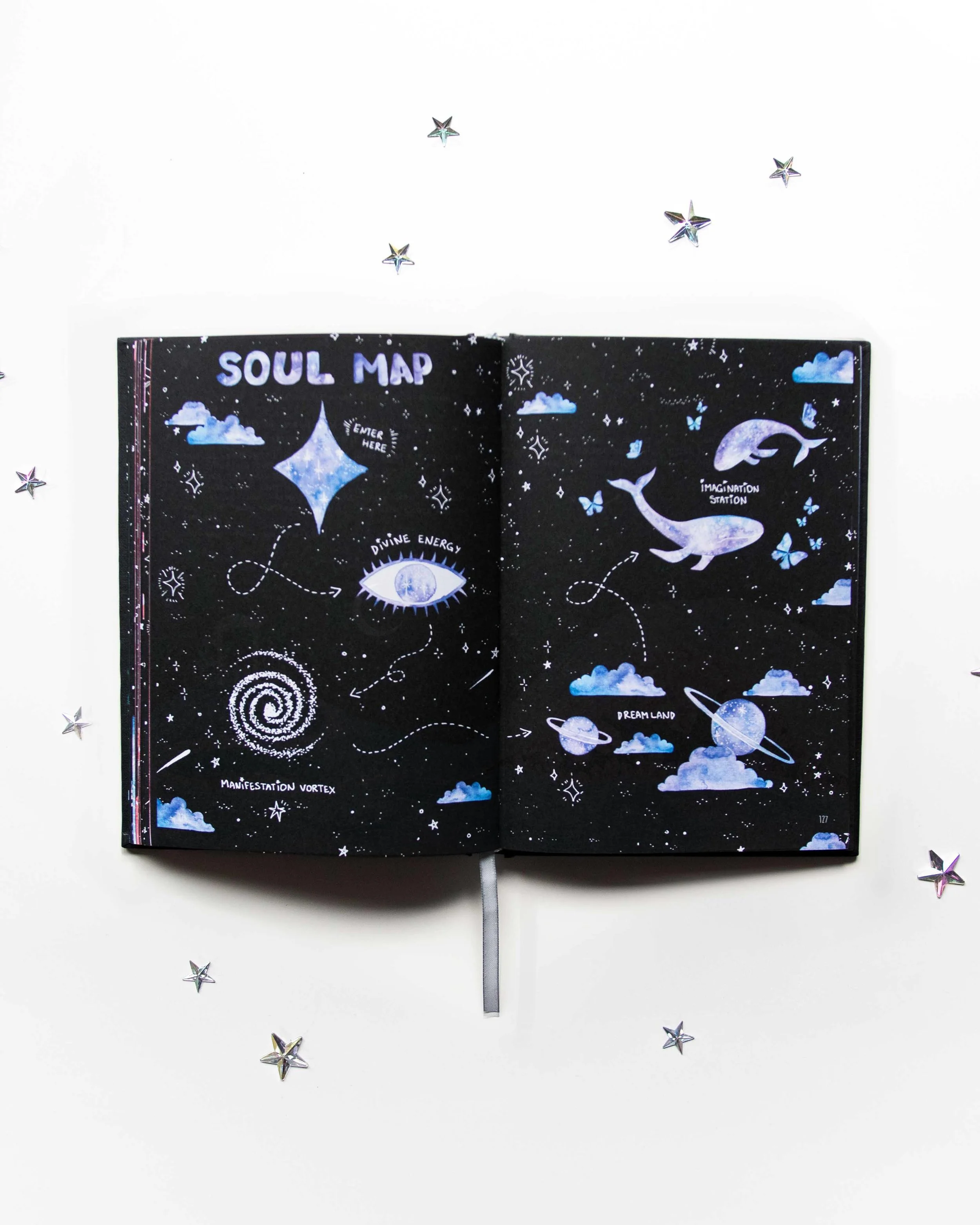 Your soul is depicted as the Universe itself. There, we play with our imagination, document our dreams, and practice manifestation.