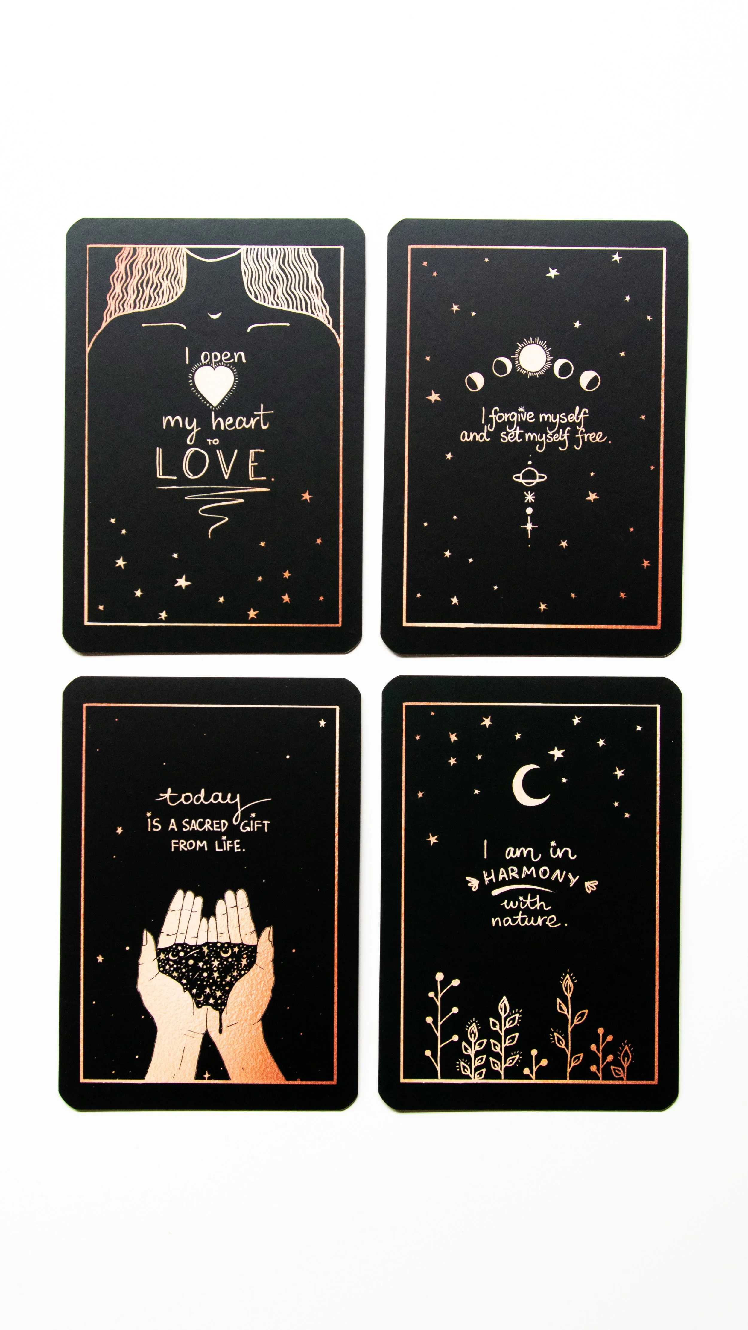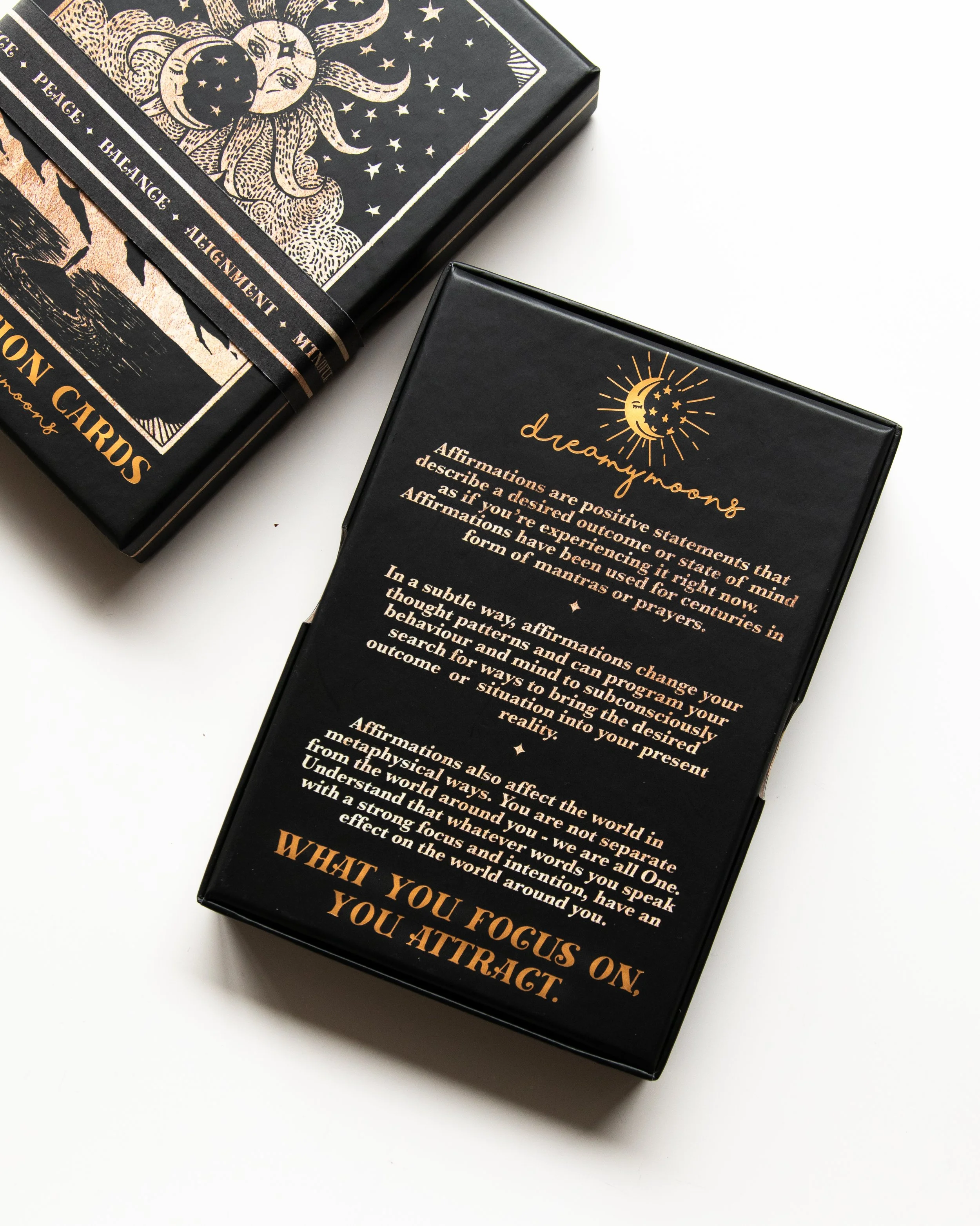 Affirmations also affect the world in metaphysical ways. You are not separate from the world around you - we are all One. Understand that whatever words you speak with a strong focus and intention, have an effect on the world around you.How to use your DreamyMoons affirmation cards: