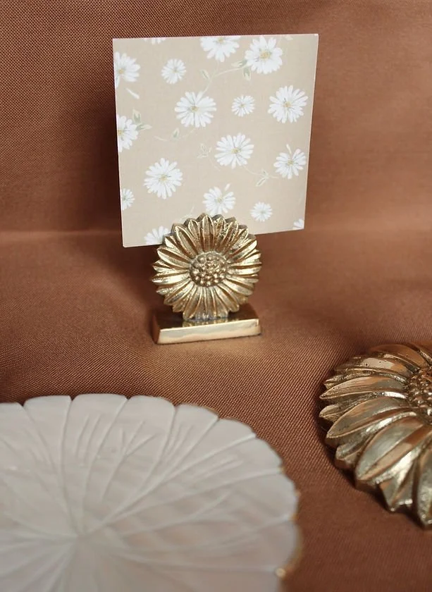 This brass card holder in the shape of a daisy is the best way to store your favorite photo of that unforgettable holiday.