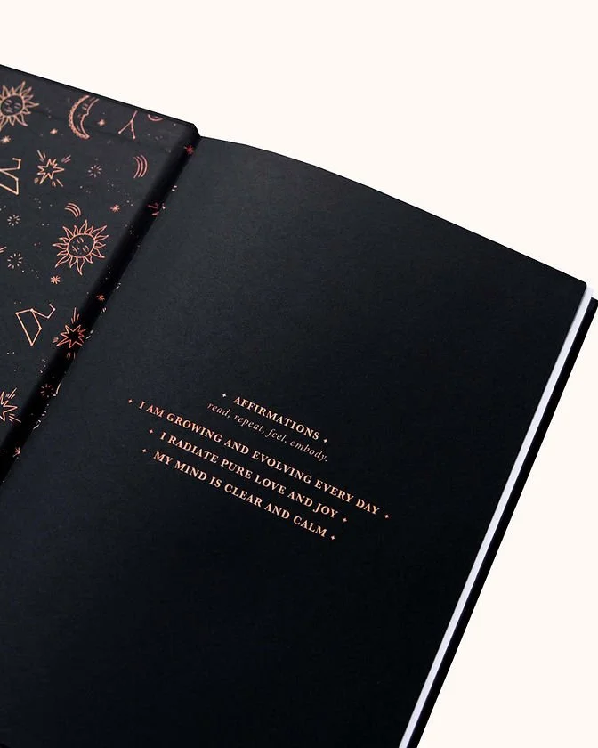 A5 hardcover journal with gold & lilac foil cover design and affirmations.LIMITED EDITION - once the design sells out, it won't come back. Size: A5 (148 × 210 millimeters or 5.83 × 8.27 inches)Cover: hardcoverInside: fully lined. 180 pages, 120 gsm thickness - what a luxury! Thick enough for most media including acrylic paint and permanent markers.With affirmations on the first page, a mindfulness exercise on the other side, and gold foiled page edges.Keep it on your bedside table or take it traveling with you. A perfect little time capsule for your ideas, memories, dreams or experience. Perfect for:✦ Bullet Journaling✦ Daily Journal✦ Sketchbook✦ Habit Tracking✦ Travel Journal✦ Personal Journal✦ Planning Journal Have fun!-Annie x