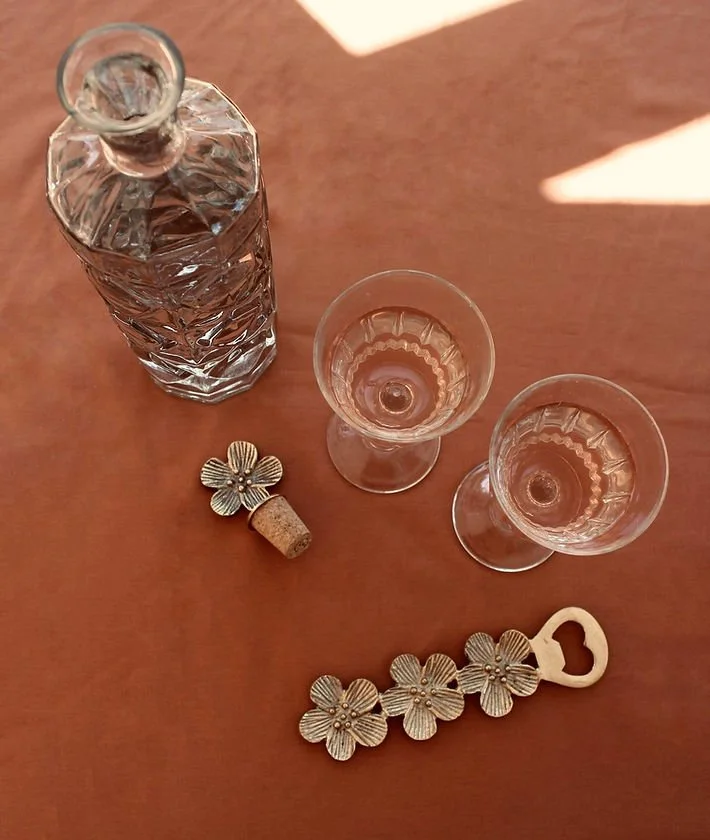 Indians are brass specialists and know their ways around cork. We decided to combine the two and make these cute bottle stoppers. Let a little shiny brass flower guard your wine. The stopper is designed to fit every regular bottle! Handmade in India