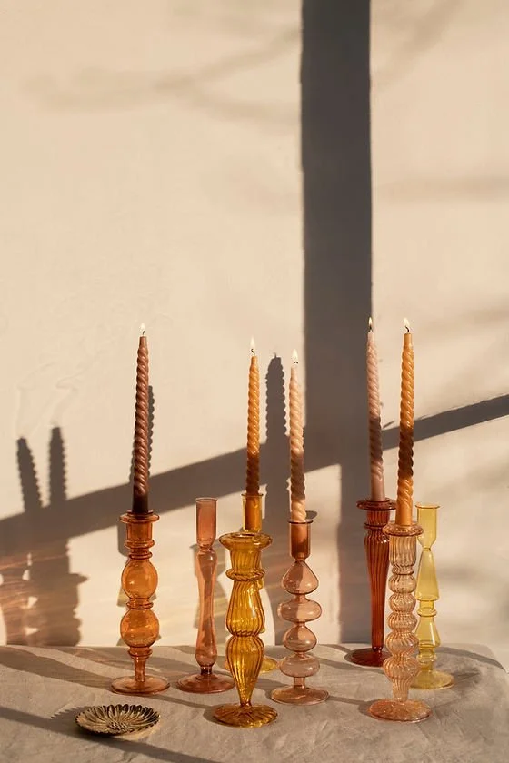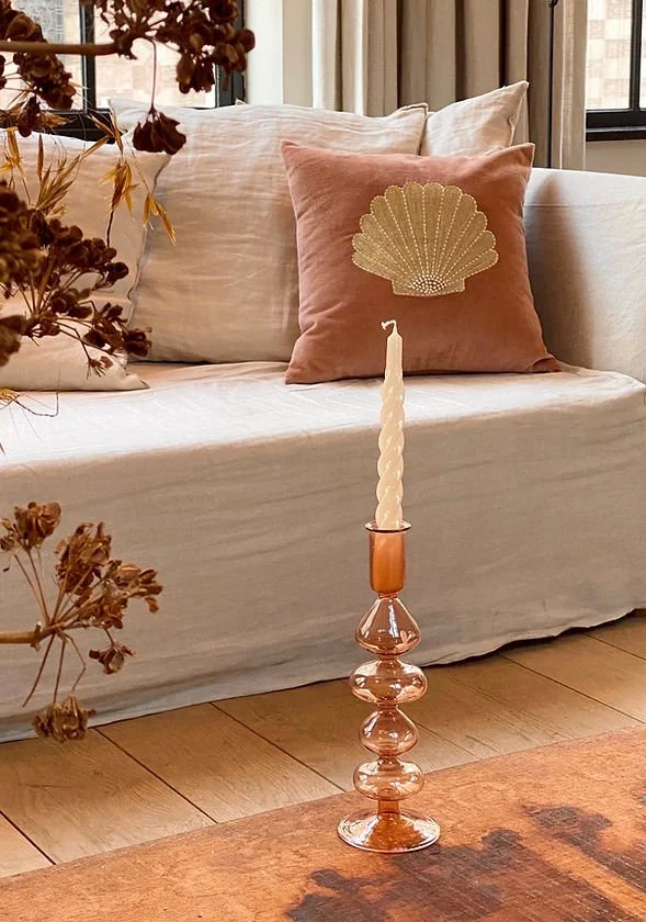 The Glass candle holder coral gives an instant wow-effect to your interior. The exceptional beautiful shape of the mouth-blown glass and the playful and vivid colors reminds us of those warm last rays of sunshine on an indian summer evening.